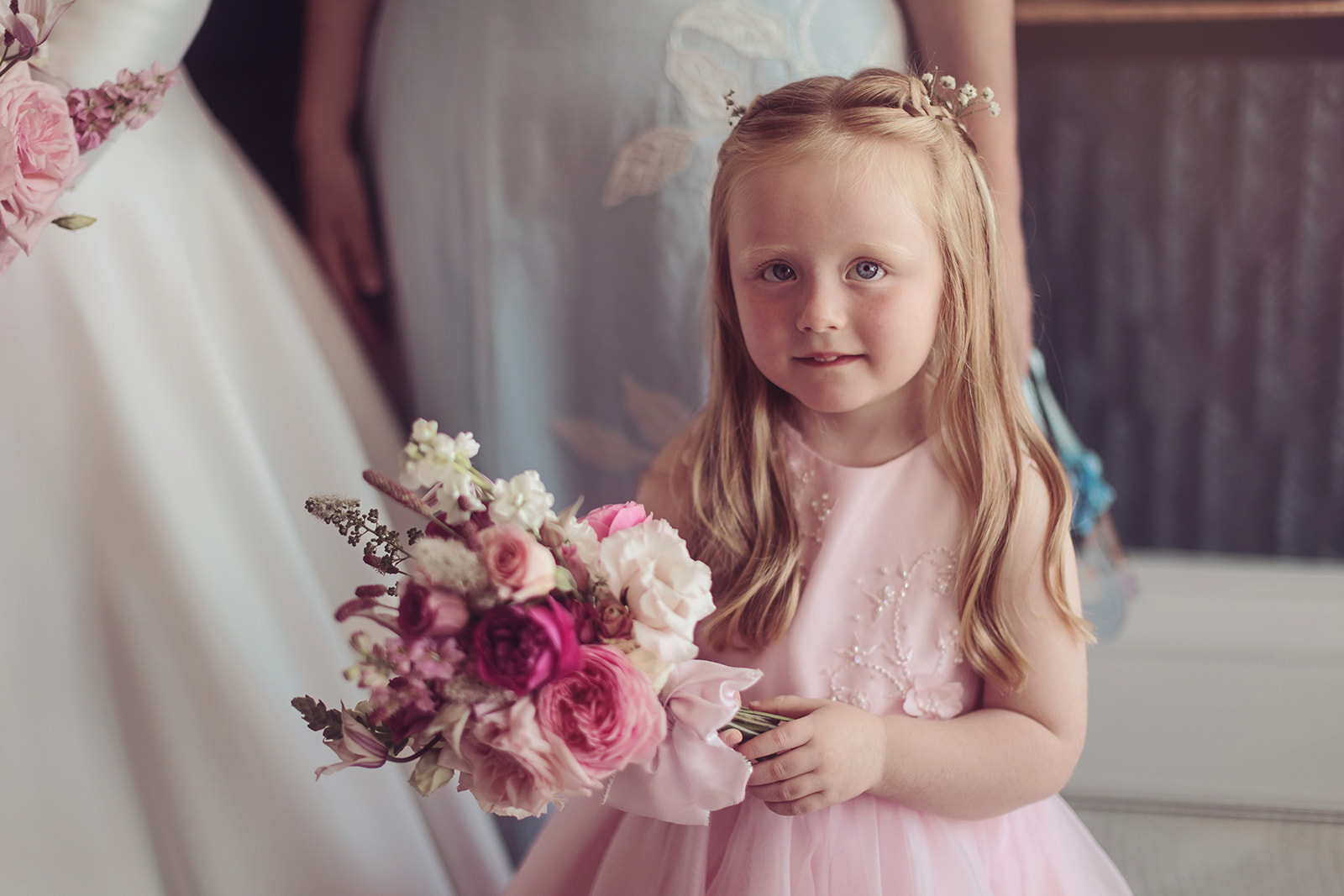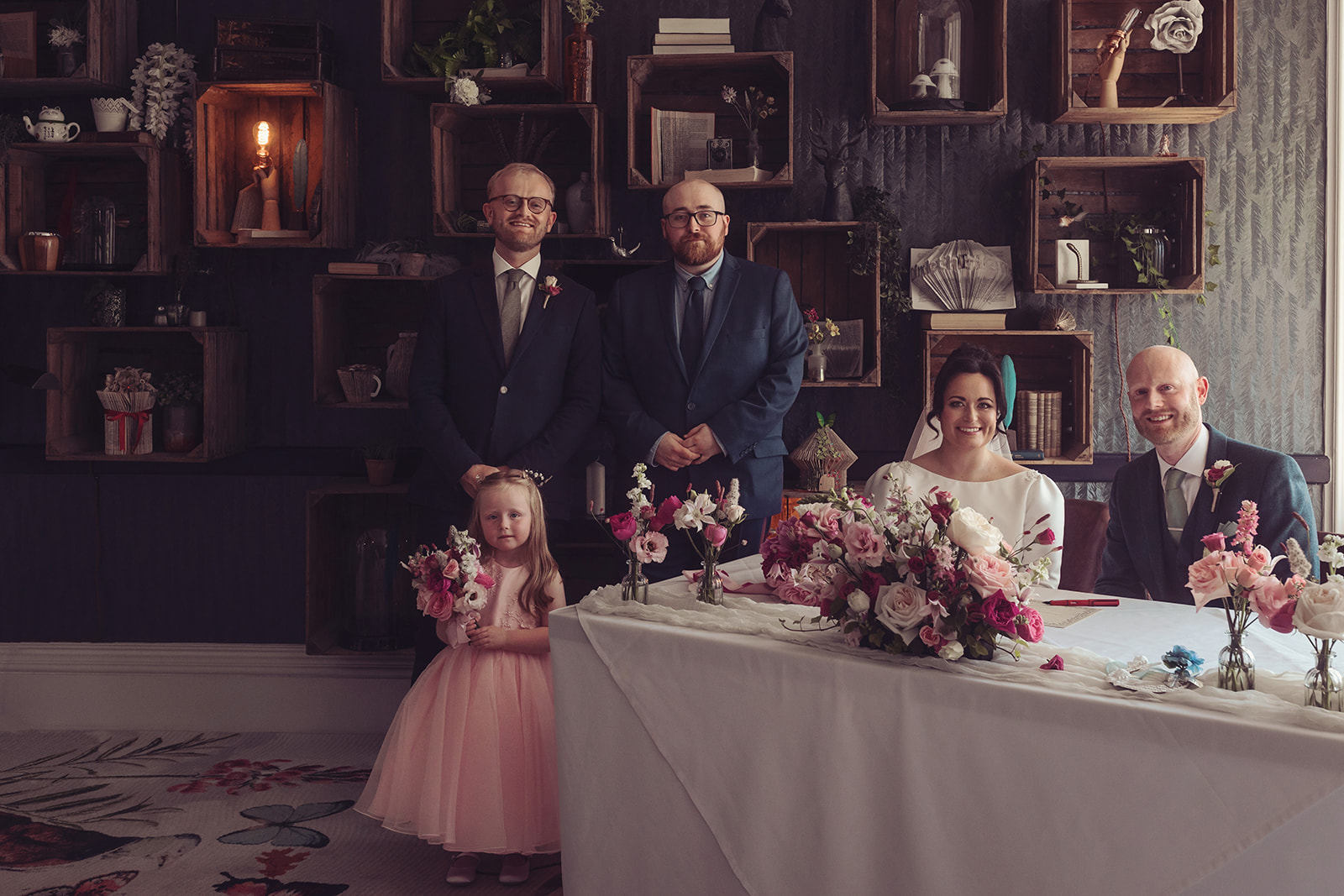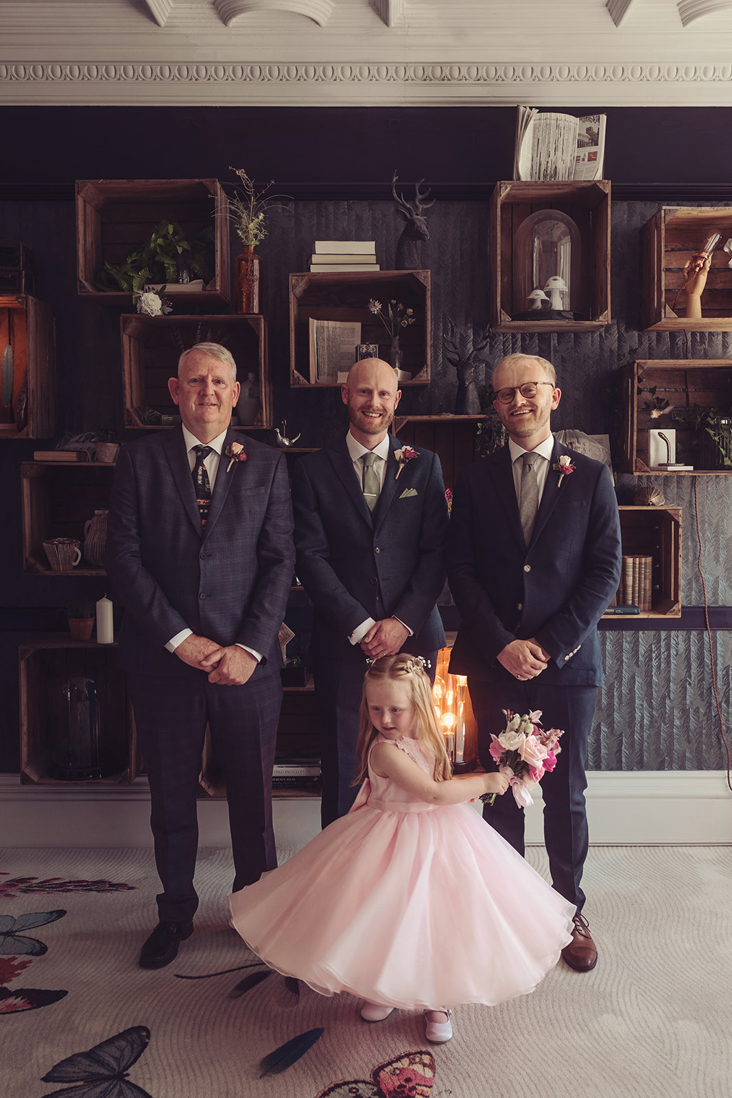 In choosing the Just Us – elopement wedding flower package and adding extra buttonholes for the gents and a petite posy for her adorable flower girl, Emily had all the floral arrangements she needed.