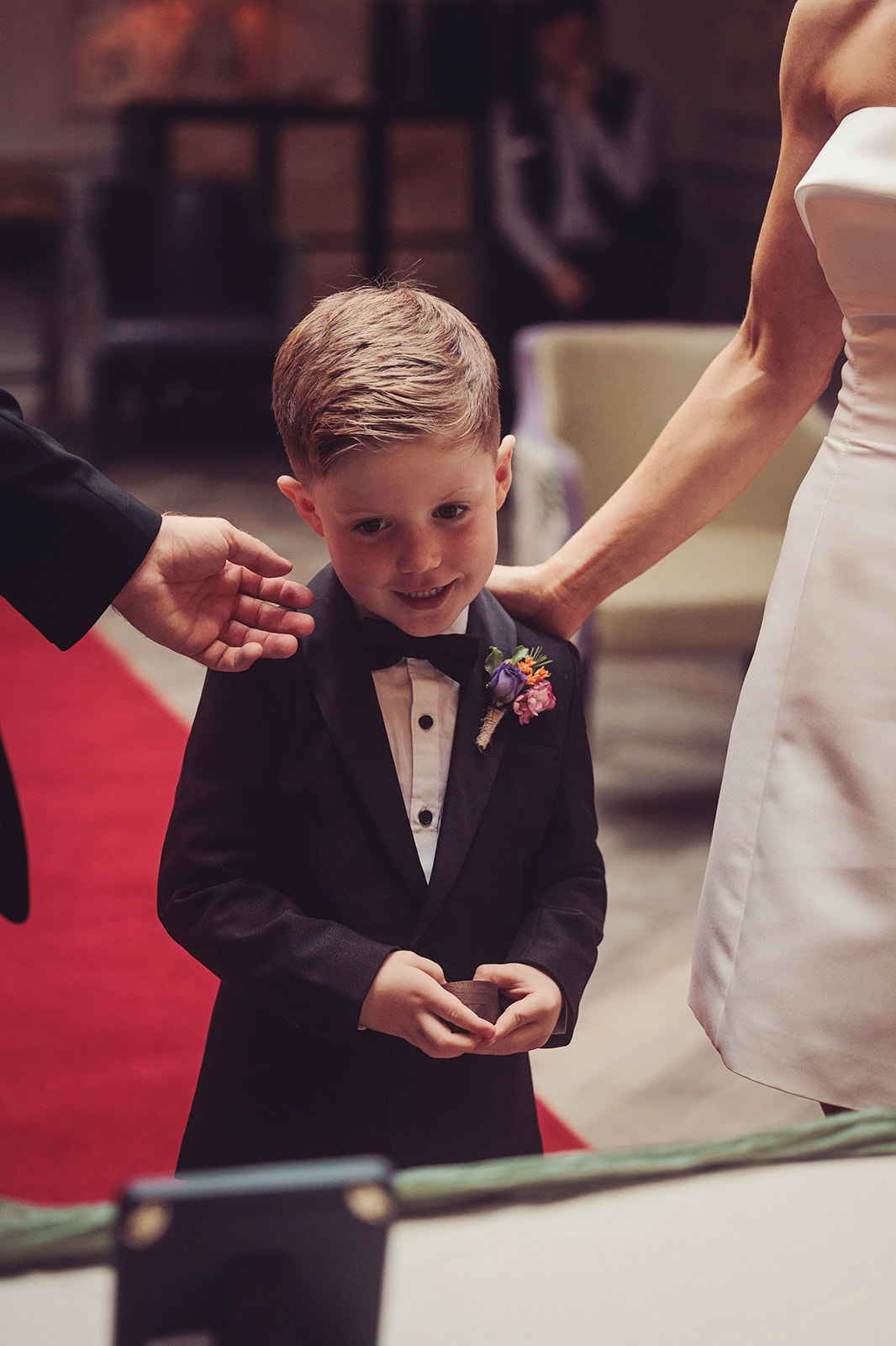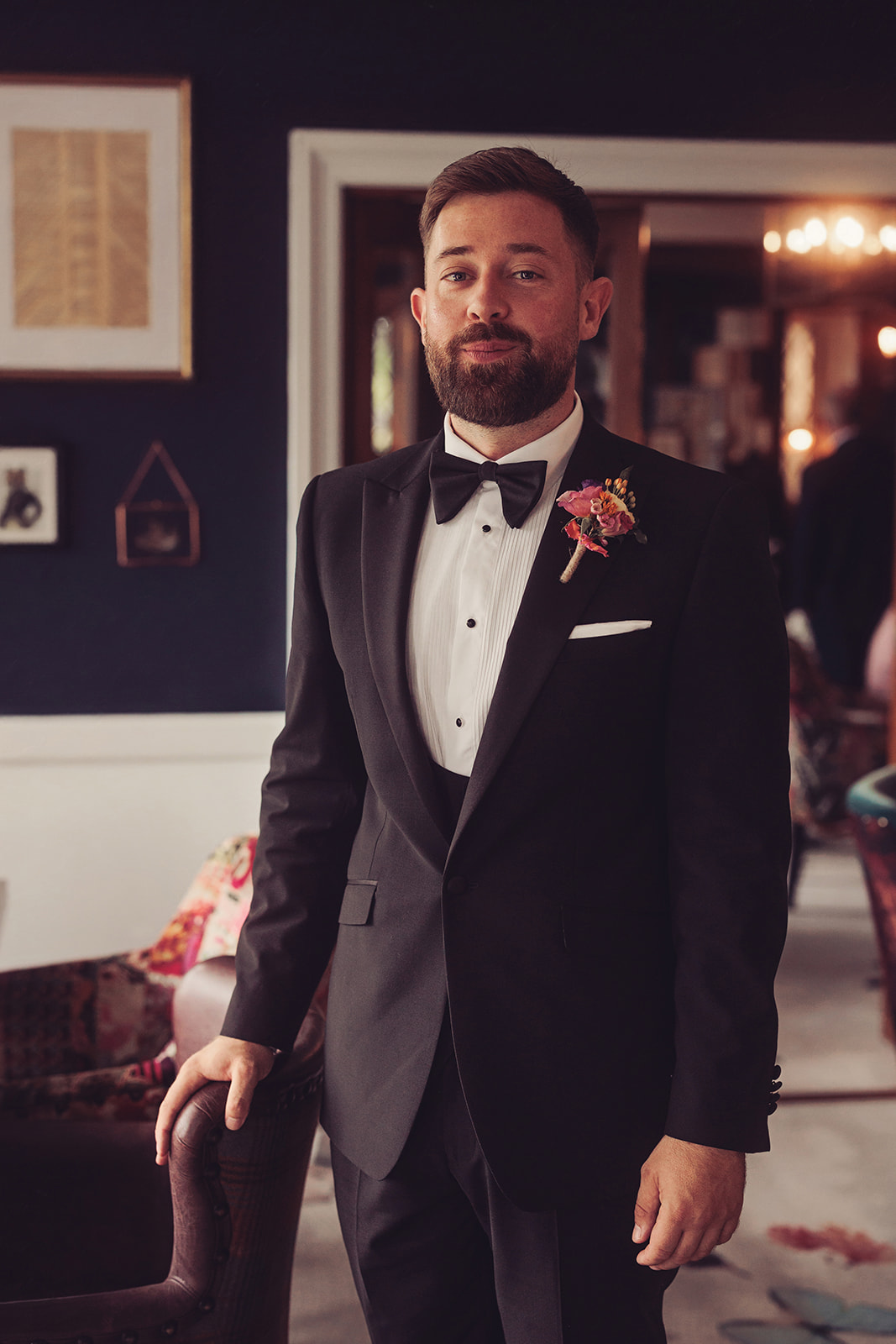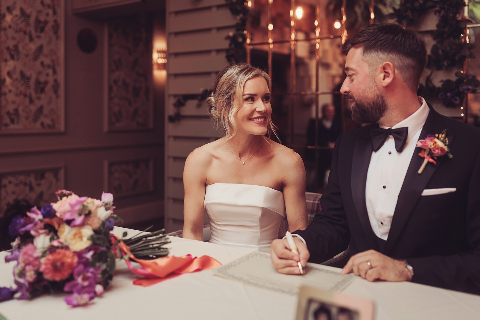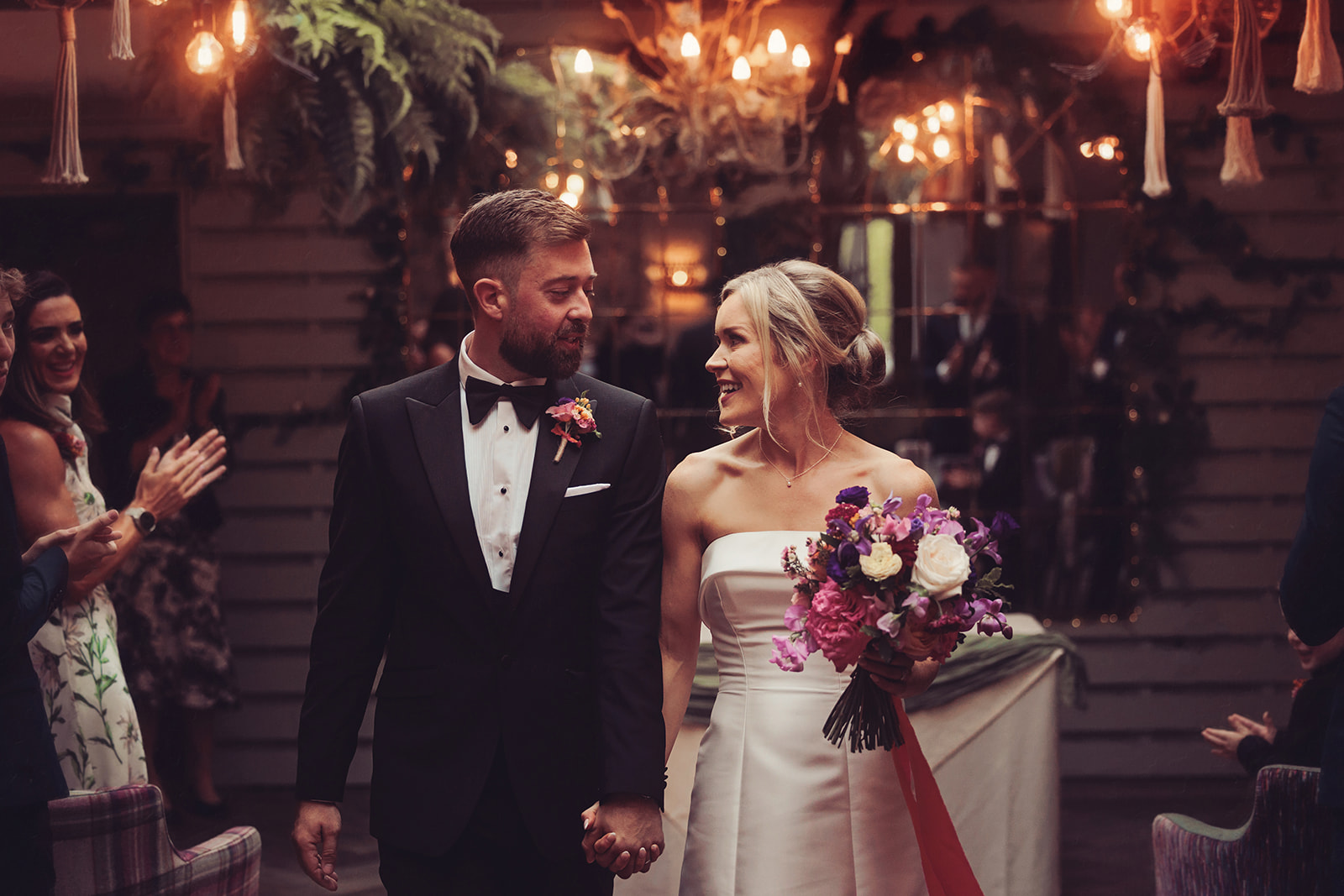 The intimate wedding ceremony took place in the Hilltop room, a bright and airy room with colourful and eclectic decor.
