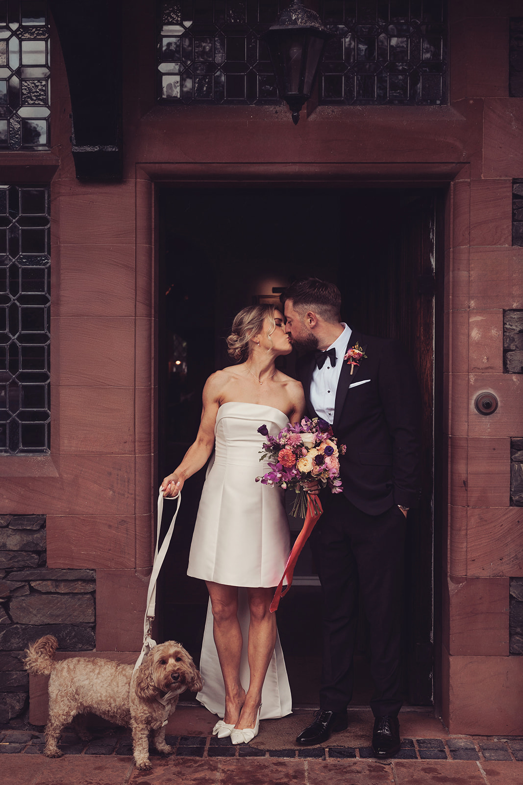 The family dogs enjoyed some doggy daycare and made a brief appearance to congratulate the happy couple.