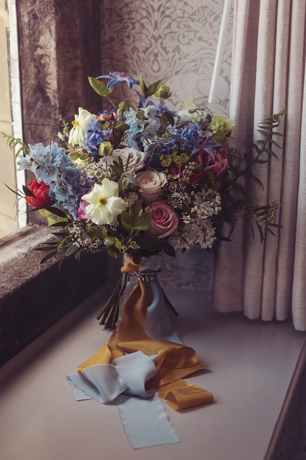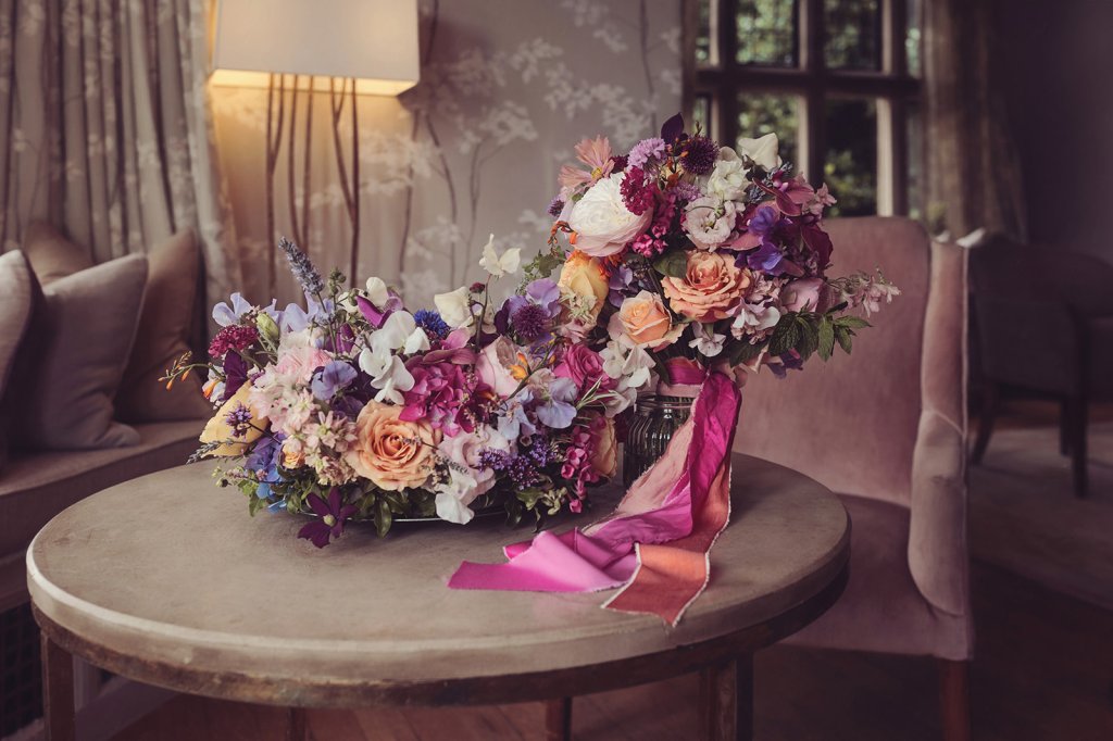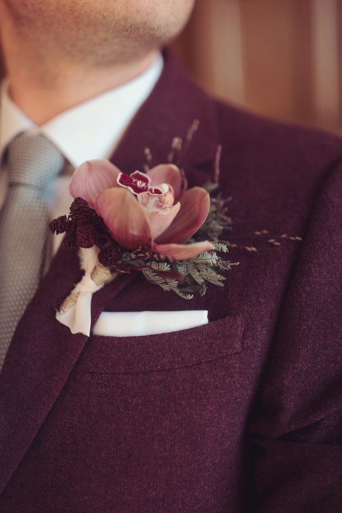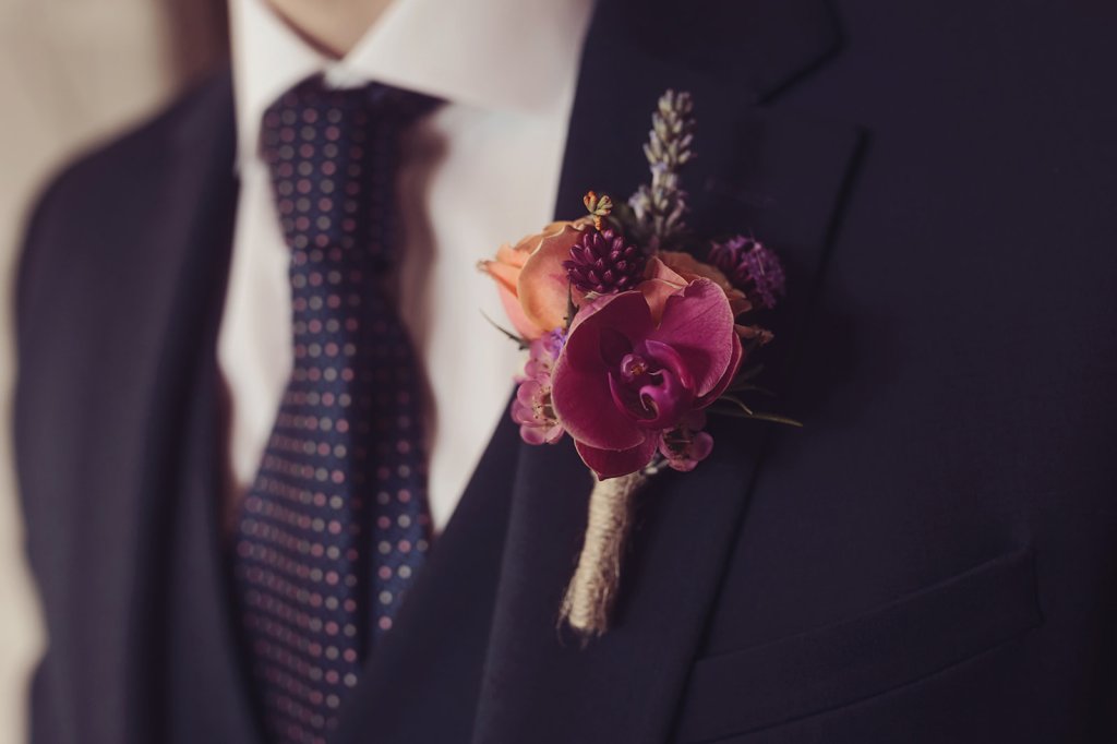 Your hand tied wedding bouquet will be created in my signature style and finished with a flourish of sumptuous ribbon to compliment your chosen colour palette. The buttonhole, a statement flower with textural elements, will be wrapped in jute twine for a little added hint of rustic charm, complete with a pearl headed pin or a magnet for easy attachment.